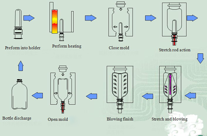 It is mainly suitable for producing water bottle, juice bottle, oil bottle, carbonation bottle, etc. This series machine not only can improve about 25% output, but also improve the rate of energy utilization.